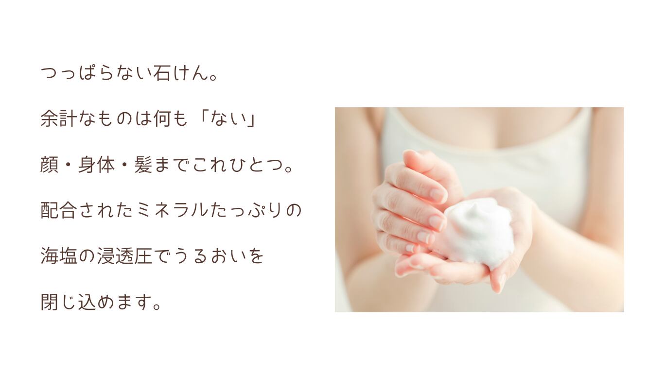 高品質な成分を使用し、合成香料や着色料を一切含まないため、安心して毎日の洗浄にお使いいただけます。あなたの美しい肌を守るために、一つ一つ心を込めて製造しました。